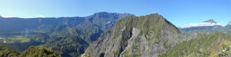 A gauche : Le Piton Bé Massoune et Mare à Vieille PlaceAu centre : Le Nord du Cirque de Salazie