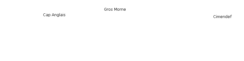 A gauche : Hell Bourg et Cap AnglaisAu centre : le Piton d'Anchaing cachant en partie le Gros Morne