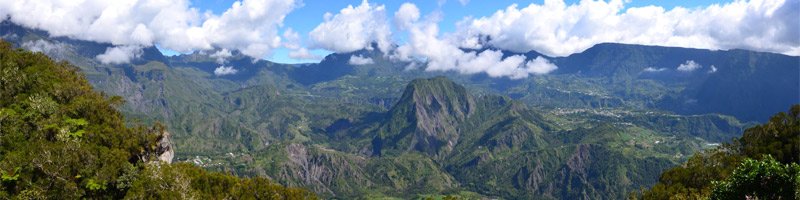 A gauche : Vers la Cap Anglais ou Hell BourgAu centre : Le Cirque de Salazie