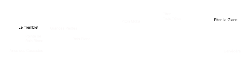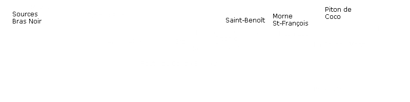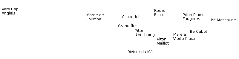 Au centre : Le Gros Morne, le Gîte de Bélouve, le Trou de Fer