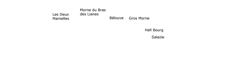 A gauche : La Savane CimetièreAu centre : Le Piton Haüy