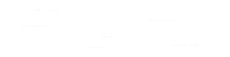 A gauche : le Col de Bébour et la Petite PlaineAu centre : le Pic des Sables et Palmiste Rouge