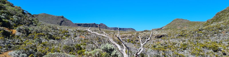Au centre : La plaine entre le Textor et le Piton de Caille