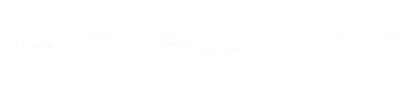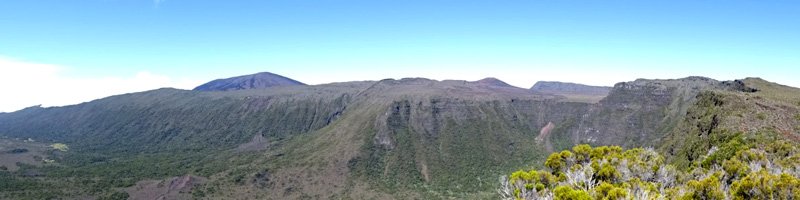A gauche : Le Piton de CailleAu centre : Le Cratère Commerson