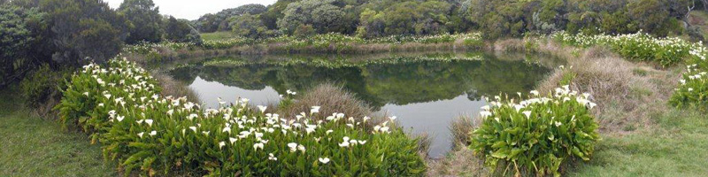 A gauche : Les pentes vers l'EdenAu centre : le Petit Etang et le Gros Morne à l'Horizon