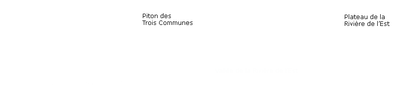 A gauche : Les réservoirs et vers le Nez Coupé de Sainte-RoseAu centre : Le Fond de la Rivière de l'Est.