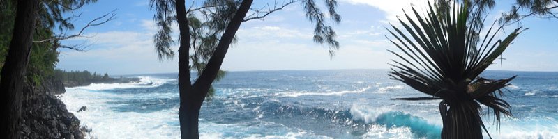 A gauche : La côte Est battue par les vaguesAu centre : L'océan