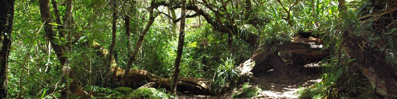 Au centre : La Forêt des Lianes et la montée vers Bélouve