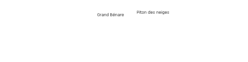A gauche : Le Grand BénareAu centre : Le Piton des Neiges et la Forêt de Bélouve.