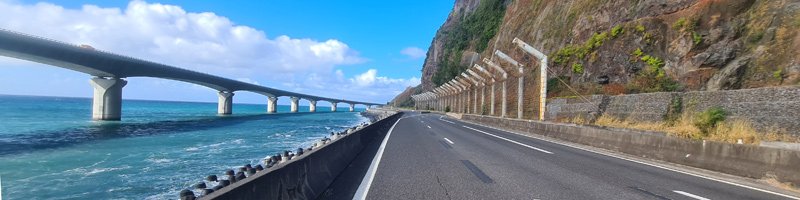 A gauche : La Nouvelle Route du LittoralAu centre : L'ancienne route