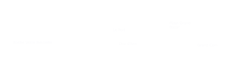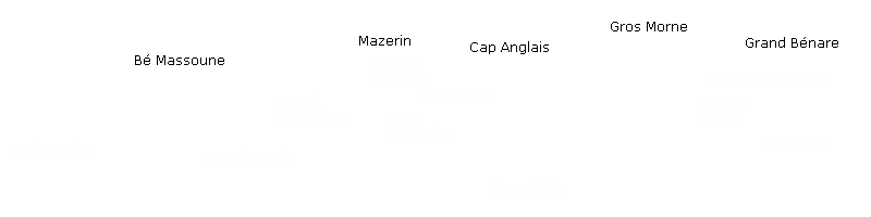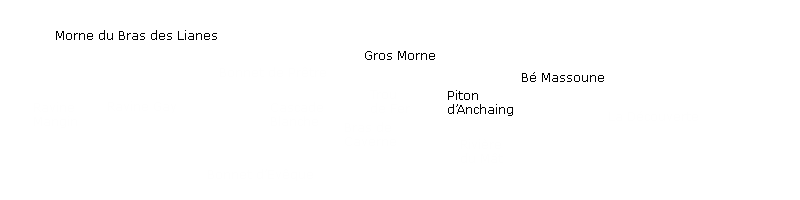 Au centre : Le Gros Morne, le Piton Cabris et la Roche Verre Bouteille