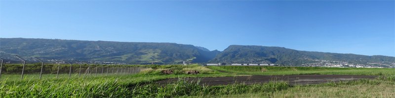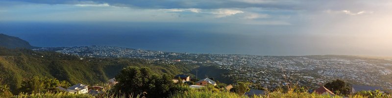A gauche : L'Espérance et le Pic Adam à l'horizonAu centre : Saint-Denis et l'Espérance les Hauts