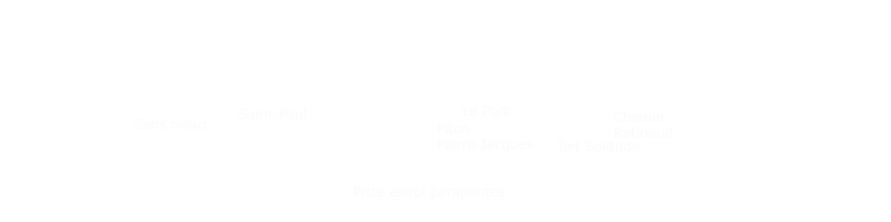 A gauche : Vers la PossessionAu centre : La Grande Chaloupe