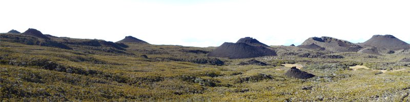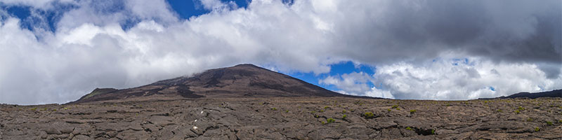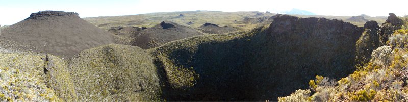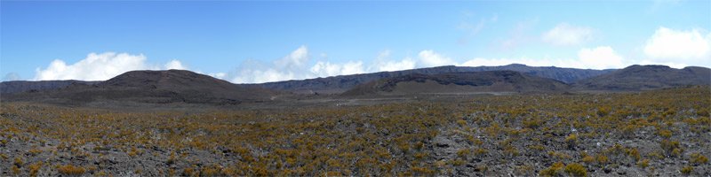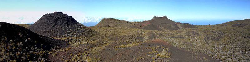 Au centre : La Plaine des Sables, le Chisny et le Piton de la Fournaise.