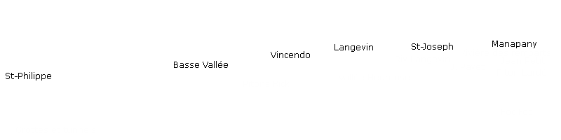 A gauche : La côte vers Saint-PhilippeAu centre : La Vallée Heureuse