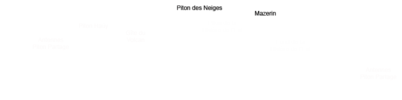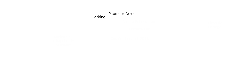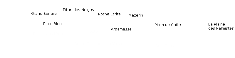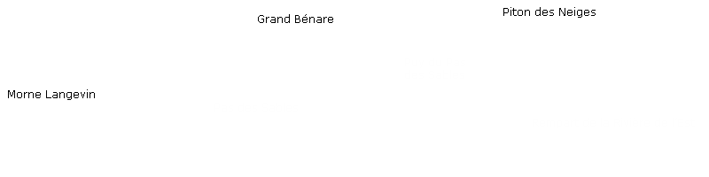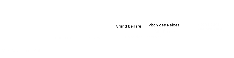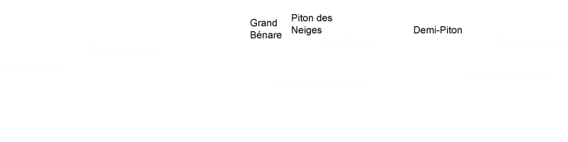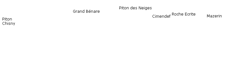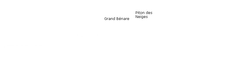 A gauche : Le Grand Bénare et le Piton des NeigesAu centre : Le Col de Bébour