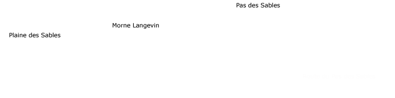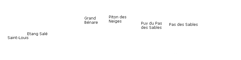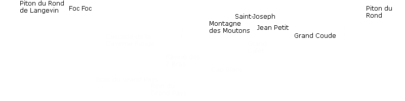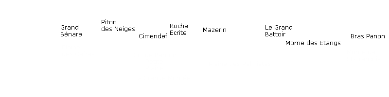 A gauche : Morne langevinAu centre : La Plaine des Sables, le Pas des Sables, et le Grand Bénare.