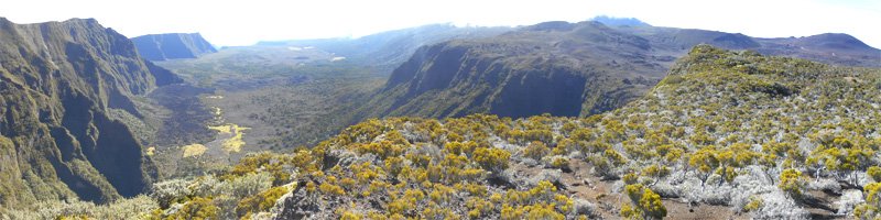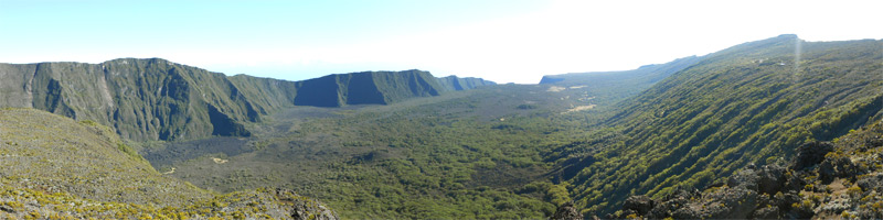 Au centre : Au centre la caldeira de la Rivière des Remparts, la Plaine des Cafres et le Piton des Neiges