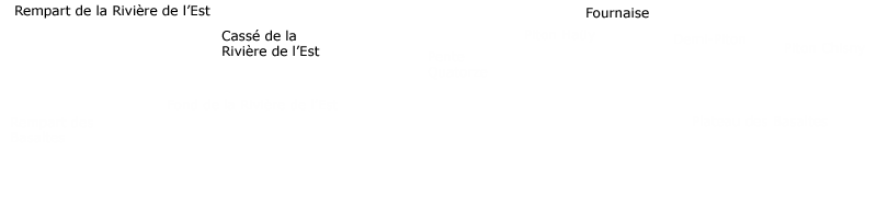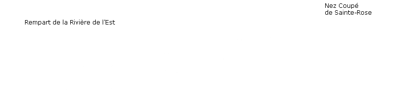 A gauche : Le Rempart de la Rivière de l'EstAu centre : Le Fond et le Cassé de la Rivière de l'Est.