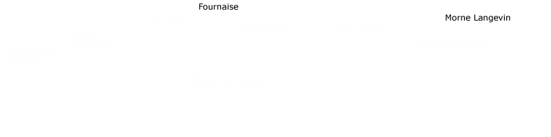A droite : Le cassé de la Plaine des Sables vers Langevin