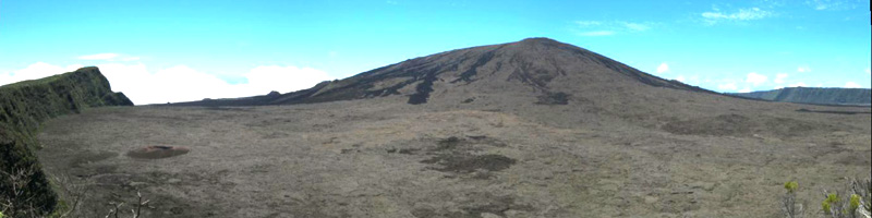 A gauche : la Fournaise Au centre : la Plaine des Sables