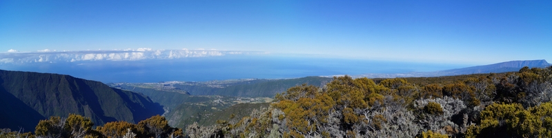 A gauche : Le Sud-Ouest vers l'OcéanAu centre : Le Grand B énare et le Piton des Neiges