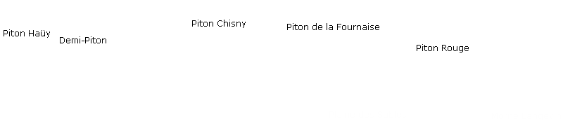 A gauche : Le Piton ChisnyAu centre : Le Demi-Piton