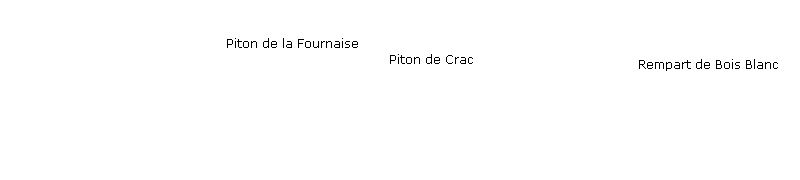 A gauche : Le Rempart de BellecombeAu centre : L'Enclos Fouqué et le Pas de Bellecombe et le sentier vers le Formica Leo