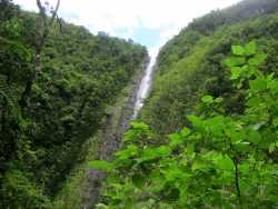 On ne peut pas manquer cette haute cascade lorsqu'on emprunte le Chemin de Grand Fond qui relie Abondance aux usines de Takamaka. Voir la micro-randonnée effectuée uniquement pour aller au pied de cette belle chute.
