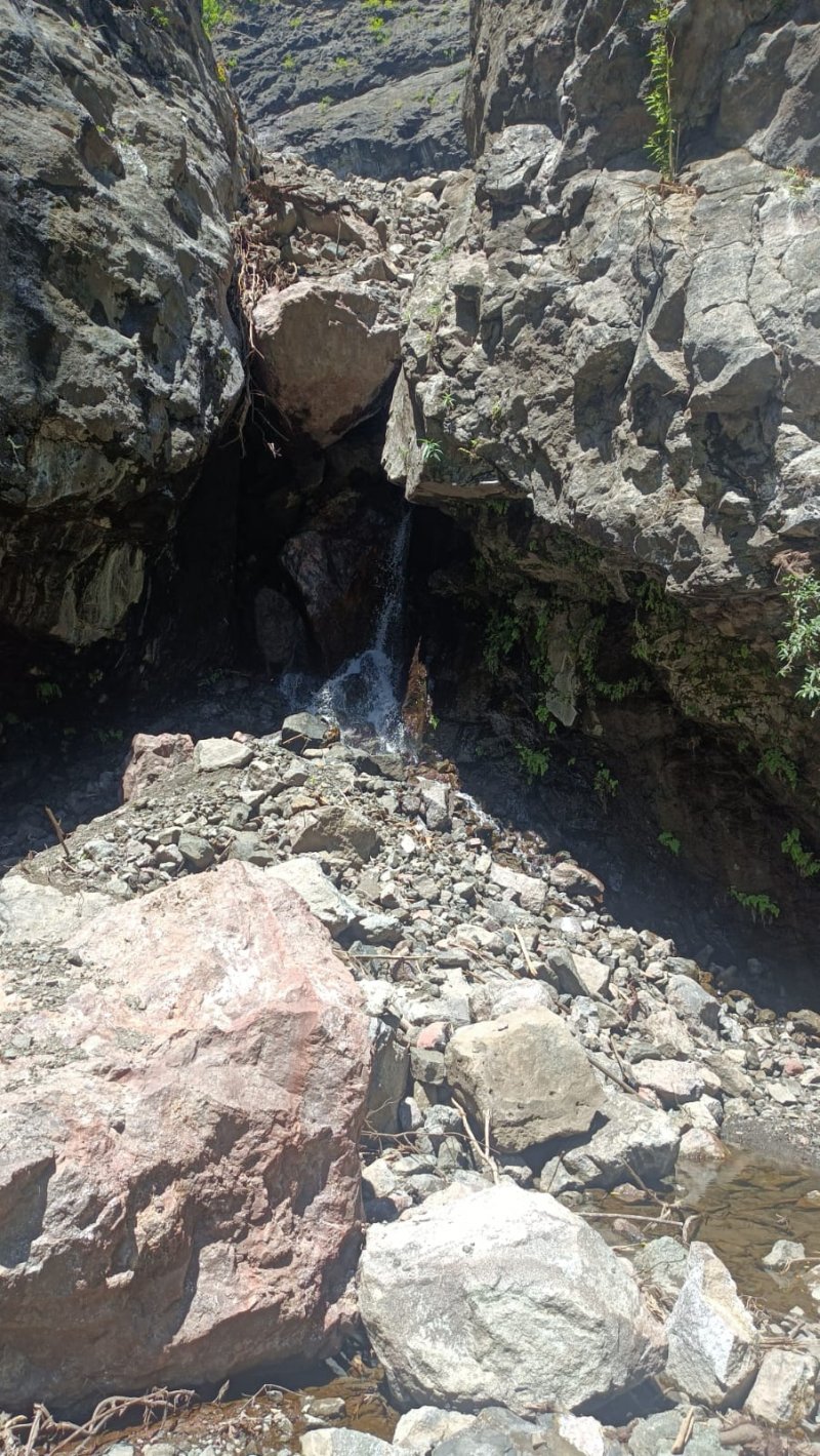 plus de bassin, plus de cascade ! un énorme éboulis bloque la cascade ,la pluie fera peut être! rapparraitre la cascade un jour
