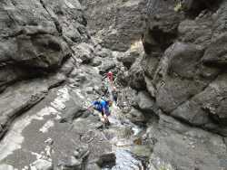 Descendre le lit de la Rivière des Galets à partir du sentier reliant la Nouvelle à Marla en direction du sentier de Grand Sable. Les deux toboggans son t impossible à manquer près de l'escalier en bois du GRR3 entre Trois Roches et Marla.