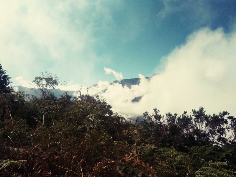 Le ciel était couvert mais nous avons eu une éclaircie en haut du Piton du Rond permettant un point de vue furtif sur le rempart et Nez de Bœuf.