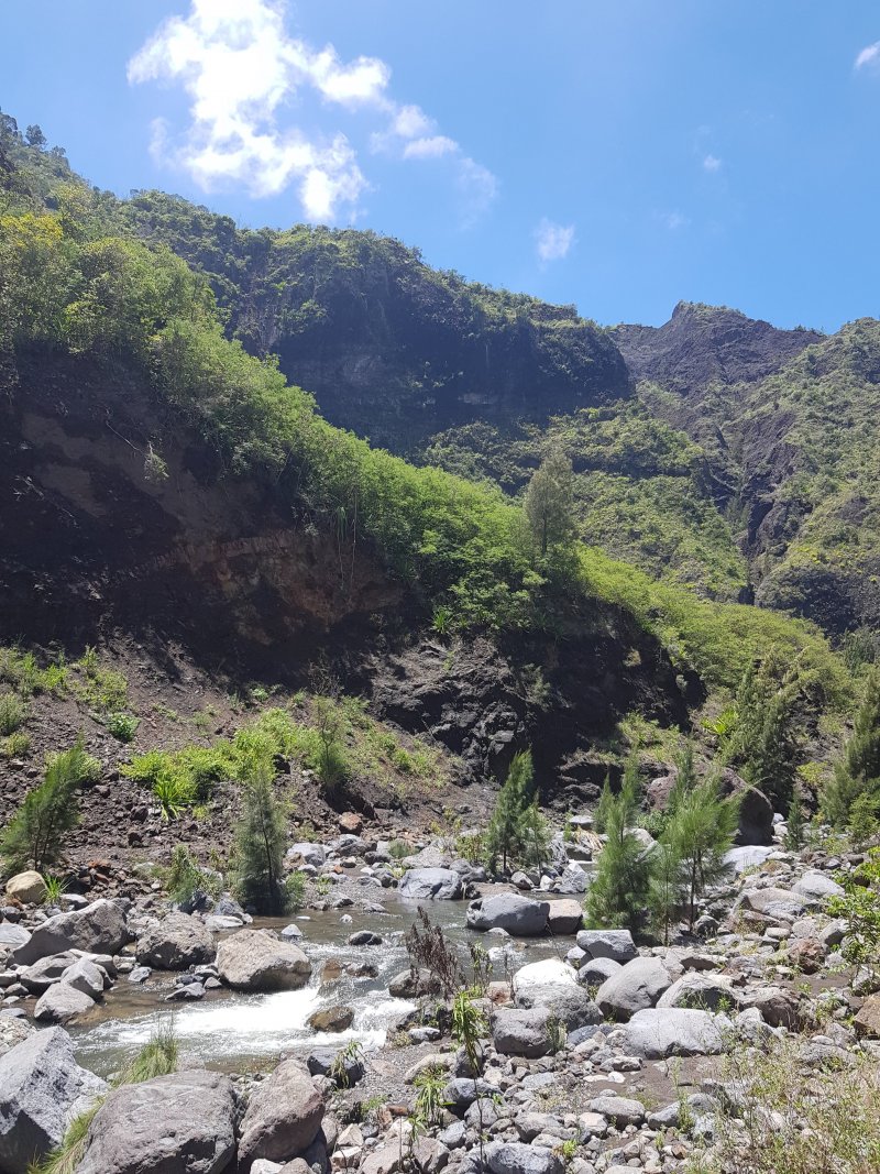 Pour les transports (itinéraire fait sans voiture) : un bus à 5h50 au départ de la gare de Saint-Paul, qui vous permet de débuter au Maïdo vers 7h. Si vous prévoyez de redescendre en bus à Cilaos après la descente du Taïbit (en sautant le tronçon par Bras Rouge), attention pas de vente de ticket à bord du bus jusqu'à nouvel ordre, il vous faut télécharger l'application "M-ticket Alterneo" sur votre smartphone :-(