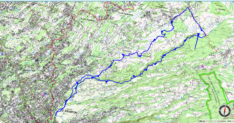 La remontée de la Ravine des Cafres depuis le Domaine Vidot à Montvert les Hauts