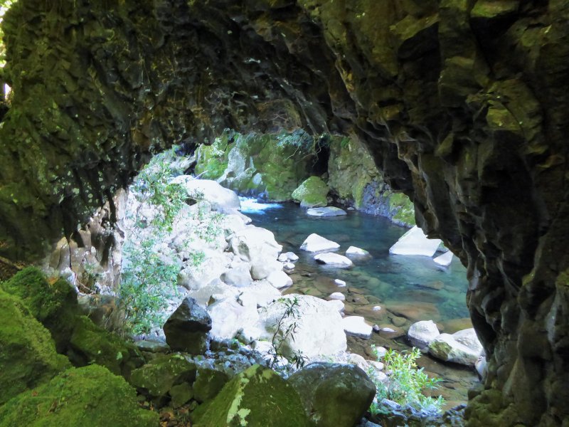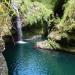 Depuis le point de vue sur la première cascade, on peut dénicher une sente discrète et acrobatique pour accéder au bassin et s'y baigner. La beauté de l'arche juste au dessus vient aussi du fait qu'elle est double.