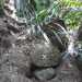 Le début du petit sentier montant au plateau est maintenant plus visible avec le marquage d'une croix sur la roche entre les deux filaos. Il y a effectivement peu de temps après ce début, un endroit où il faut passer à quatre pattes sous des arbres couchés, mais rien de bien difficile !! ( voir les photos du départ et du passage sous les arbres).