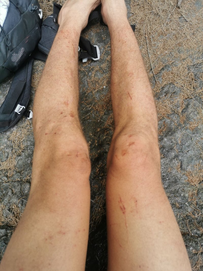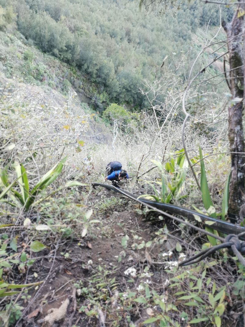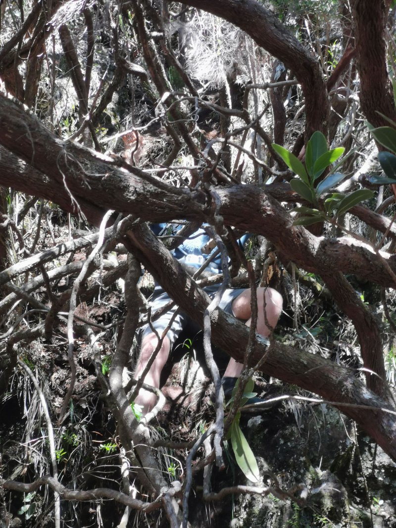 J'ai tenter ce matin, abandonner juste en dessous du sommet en longeant la parois rocheuse, La portion le long du rempart dans la forêt d'eucalyptus est totalement envahie de vigne marrone impossible à contourner.