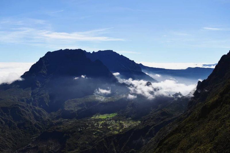La boucle de la Roche Merveilleuse depuis l'hôtel des Thermes de Cilaos. |