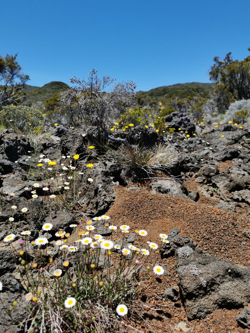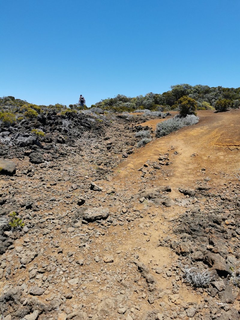 Tout au long, belle vue sur le volcan, l'enclos et au début puis au retour sur le Formica Leo. Les km en descente vers le Nez Coupé de Ste Rose sont très bien passés malgré un sentier comportant des marches importantes et par endroit très raviné
