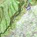 Ce n’est donc pas sur un sentier, mais sur une piste empruntée par des tractopelles et des quads que l’on peut cheminer jusqu’à l’installation d’une nouvelle passerelle (non officiellement ouverte) à l’embranchement de la canalisation de la Source des Hirondelles. Un pont métallique a également été installé pour la circulation des engins de chantier. Il faut donc repasser une nouvelle fois sur la rive gauche du Bras de Sainte-Suzanne, et prendre le sentier qui semble être assez fréquenté, du moins jusqu’au lieu-dit « Le Trou », après avoir franchi deux passerelles et cheminé au milieu de goyaviers, de choquas verts et d’être passé devant une tractopelle laissée à l’abandon en 1989 lors de la pose de la première canalisation. Comme indiqué sur la carte, ma rando en jaune (sur la photo), comparée à celle de RandoPitons en bleu, s’est arrêtée au bout de cette seconde passerelle à partir de laquelle le sentier me semblait avoir disparu pour faire place à une escalade le long de la canalisation.