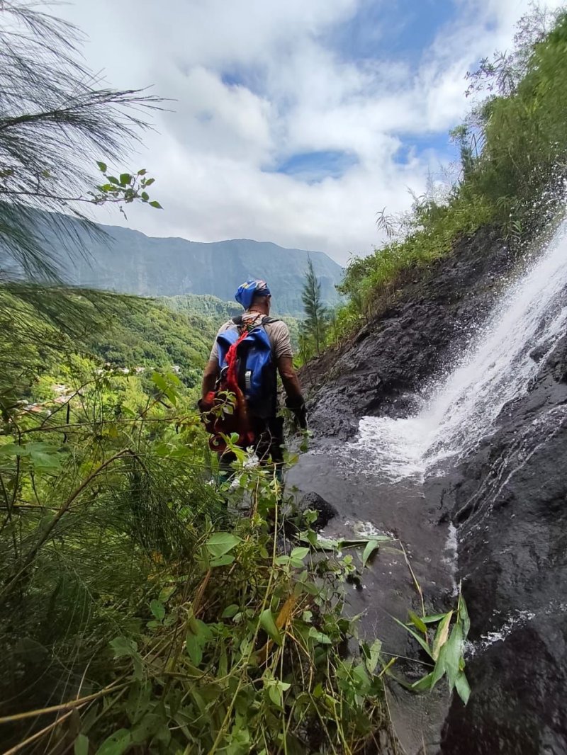 La descente à la Chapelle par la Cascade de Bras Rouge depuis la Route de l'Îlet à Cordes |