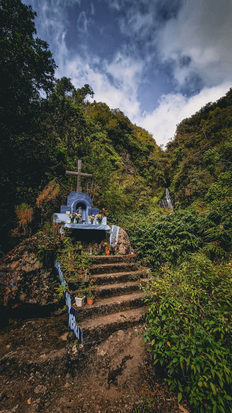 Sentier bien entretenu, pour accéder au pied de la cascade, il faudra dépasser l'oratoire en suivant les canalisations 😉