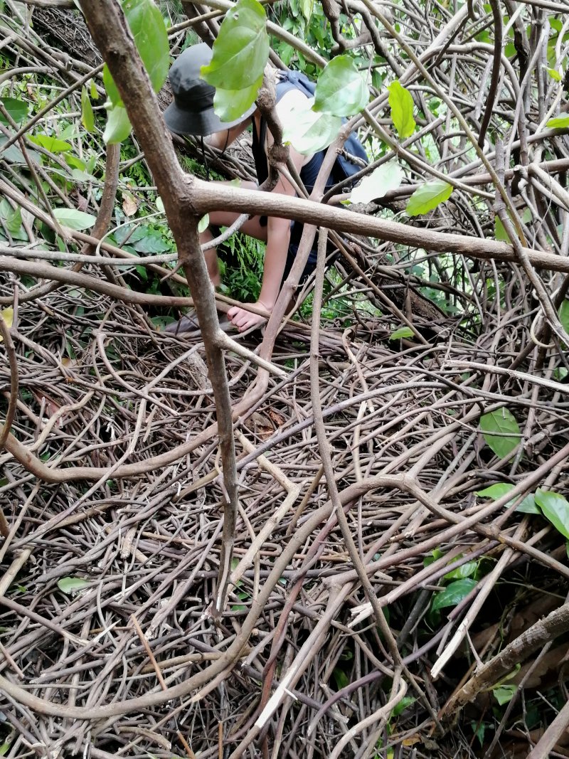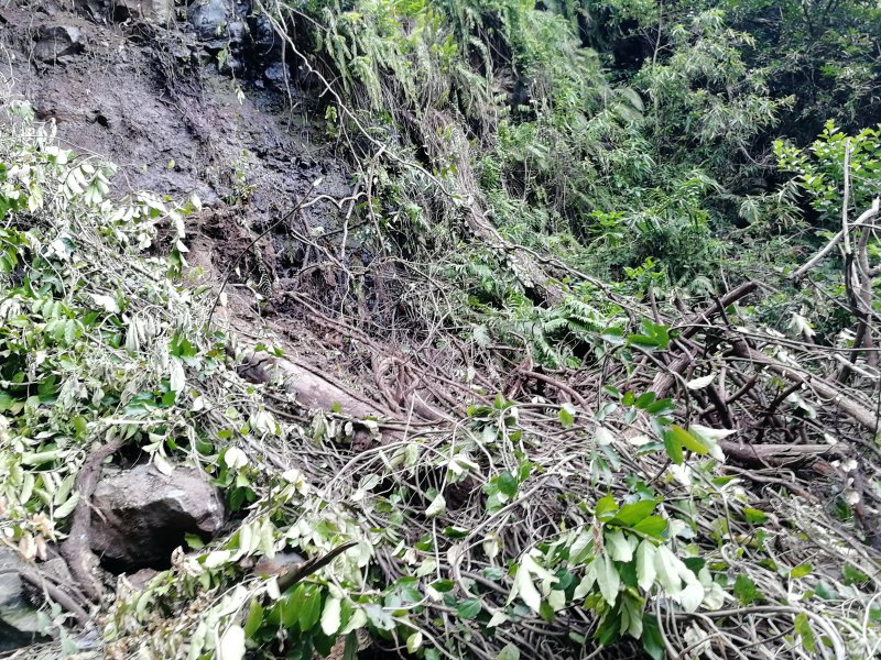 Sentier officiellement fermé, rendu très difficile après le passage de Berguitta. Des éboulements, glissements de terrain, arbres et bambous couchés sur le sentier etc. Progression donc très lente, laborieuse et dangereuse par endroits. Le sentier était difficile à suivre, heureusement que nous avions la trace GPS. On est évidemment récompensés par l'arrivée au bassin, mais il faut s'y engager vraiment prudemment et savoir que cela va être technique et laborieux !