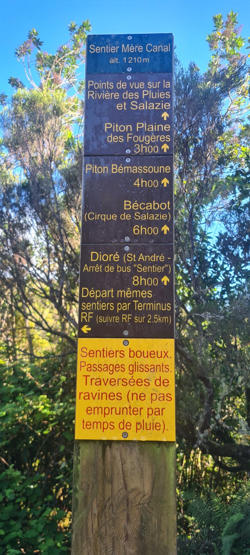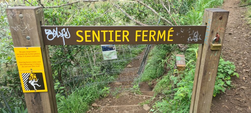 Fait ce jour en 9h30. Sentier glissent du au pluie de la semaine, fait avec un beau soleil. Sentier bien entretenu . Obligé d'utiliser la trace gps pour monté sur le piton de l'Entre deux Sentier invisible.