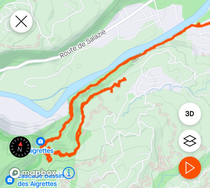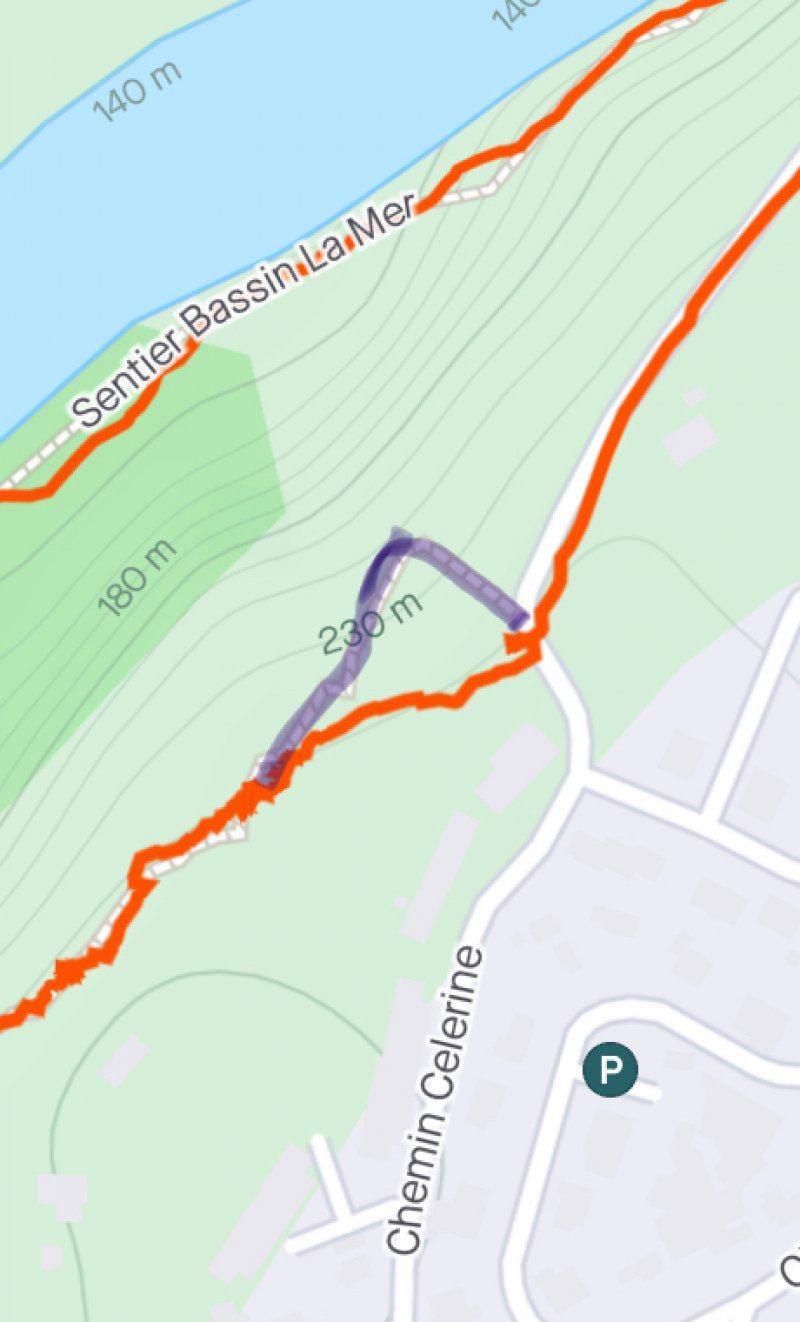 détour bassins, boucle que je fais régulièrement plusieurs fois par mois en entraînement trail). Le bord du champ de canne au dessus a été élagué et la masse de branchages couchée en travers du chemin 😡. Au début ça passe difficilement, ensuite ça devient compliqué, obligé de passer au dessus du tas de branchages, casse-gueule, épines, nid de guêpes, abandonné après plusieurs piqures 🤬