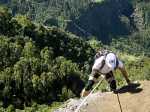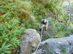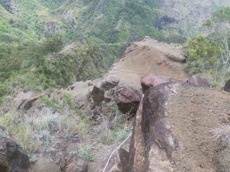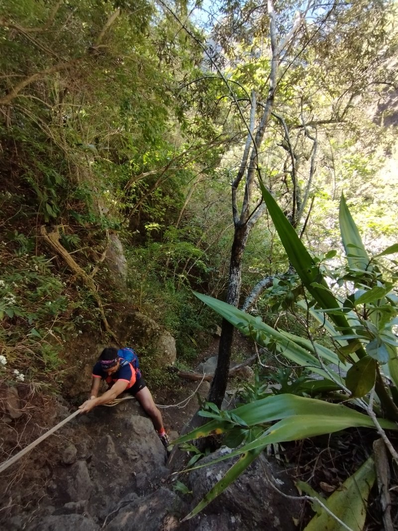 Le chemin de cordes est vertigineux mais moins compliqué que la ravine bien qu'il tire sur les bras.