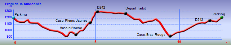 On m'a signalé des randonneurs pratiquant cette sortie en sens inverse. Chacun fait ce qu'il veut mais je me dois d'avertir qu'il est dangereux de pratiquer de très fortes pentes en descendant (Voir profil ci-dessous), à moins de se trouver le long d'une cascade avec une équipe de canyonistes.