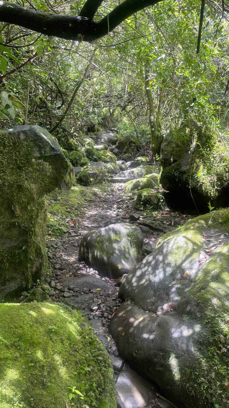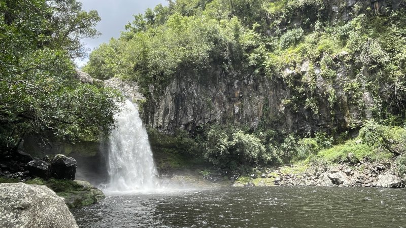 Depuis la remarquable remise en état du sentier qui longe la Rivière du Mât, il y a désormais la possibilité de se promener le long des berges de la rivière ou de son affluent, le Bras des Lianes, de plusieurs manières. La fiche qui y prévoyait une balade à l'époque où la sortie tenait de l'aventure a donc été revue et corrigée. Deux itinéraires ont été intégrés afin de satisfaire tout le monde. Cette page traite d'une sortie courte en aller-retour pour faire plaisir à toute la famille. Une autre intéresse plus les sportifs car elle comporte une série de petites difficultés qui lasseraient des enfants ou des personnes mal entraînées en raison des très nombreuses petites montées, qui additionnées, dépassent les 200 mètres. Les deux circuits sont un pur plaisir, autant pour les yeux que pour les oreilles. Pas de panorama pour cet aller-retour mais de belles portions de rivière, des bois de couleurs et surtout ce magnifique bassin et sa grande cascade qui ajoutent de l'intérêt et justifient à eux seuls le déplacement.