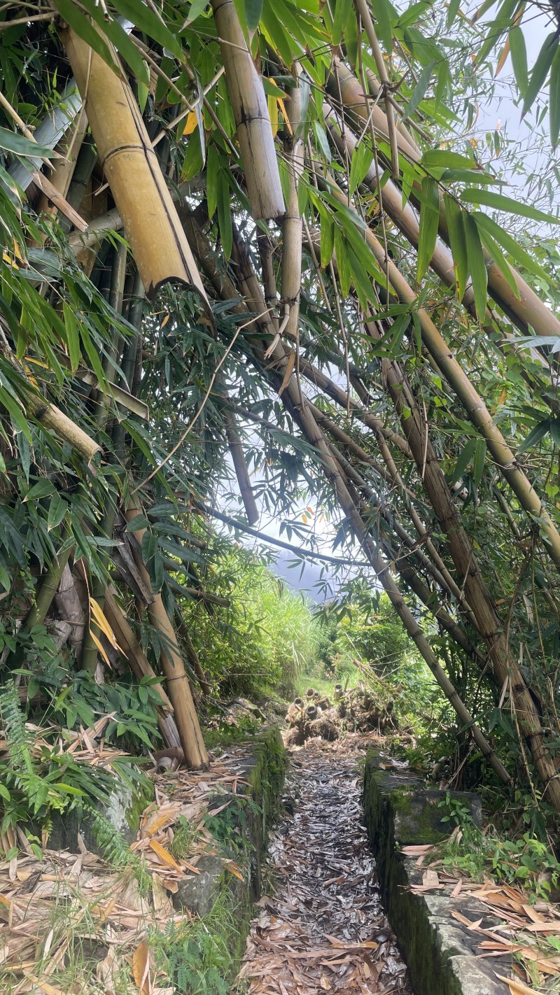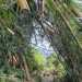 La randonnée débute au Parc des Berges de la Rivière du Mât (photo 1). On longe tout d'abord le mur d'enceinte d'une usine de plastique parmi d'énormes vestiges rouillés de machines ou de réservoirs laissés à l'abandon. Les caméras de surveillance sont, elles, en très bon état de fonctionnement (pancartes : photo 2). Le véritable sentier débute à la fin de cette zone et longe la falaise et une petite murette entourée de végétation très verdoyante (photo 6). Les premières touffes de bambous font leur apparition (photo 4). Le sentier emprunte souvent le fond d'un ancien aqueduc en ruines qui donne l'assurance de marcher à plat (photo 6). La rivière est toujours proche et donne envie de se baigner par forte chaleur. On aperçoit d'ailleurs souvent des familles entières se rafraîchissant dans de vastes bassins. Parfois le courant est très violent (photo 8) et il faut se garder de descendre dans l'eau. Le fond de la rivière est constitué de gros rochers qui servent de cachettes aux truites et anguilles (photo 9). Le parcours continue, aussi plat dans la verdure avec le bruit de l'eau toujours présent. Il y a pourtant de petites montées pour contourner des obstacles naturels mais le sentier comporte des marches (photo 14). On chemine parfois sous d'énormes bambous dont certains atteignent 25 cm de diamètre (photo 15) ou dans de beaux bois de couleurs. Plus haut, on distingue mieux le Bras des Lianes qui se jette tout près dans la Rivière du Mât (photo 16). On rencontre plus loin un sentier qui part sur la droite en longeant la rivière. Il permet de rejoindre un bassin situé en aval de la Cascade de la Mer, visible sur la carte (photo 11). Le sentier est glissant et il faut parfois enjamber des rochers pour y parvenir. Profiter de quelques retenues d'eau en bordure pour chercher les truites au repos. La couleur de l'eau incite peu à la baignade mais elle est possible et sans danger car l'eau est en réalité très propre ; ce sont les rochers du fond qui donnent cette impression de sombre. Cette impression est encore plus marquée en amont dans le Bassin de la Mer en raison de la profondeur de l'eau. Après avoir fait demi-tour et poursuivi la grimpette on arrive à de gros manguiers impossibles à manquer. Une pancarte discrète indique le bassin à 10 minutes. On attaque alors quelques montées courtes et descentes abruptes pourvues de hautes marches qui mèneront rapidement au bassin (photo 21). Au pied de cet escalier, un premier bassin alimenté par une petite cascade est difficile d'accès (photo 22). On entend le fracas de la chute du Bassin de la Mer avant de la voir. Le sentier ne mène pas directement aux berges et il faut franchir quelques grosses pierres qui constituent l'essentiel des plages du bassin (photo 24). Ils peuvent être glissants à cause des éclaboussures et sont toujours coupants (Photo 25). Par beau temps et en faisant attention où poser les pieds, on peut descendre au bassin pour mieux apprécier la cascade puissante et bruyante (photo 26). De l'autre côté du bassin, la végétation est entièrement recouverte de longues lianes qui auront vite fait d'étouffer les arbres en place (photo 27). Au retour de cet écart, avant de repartir à gauche vers le village, on peut poursuivre vers le haut pour rejoindre le sommet de la chute (photo 28). Cette portion est décrite dans le circuit plus difficile qui fait une boucle en revenant par Bellevue. Rejoindre donc le parking en prenant le sentier en sens inverse.