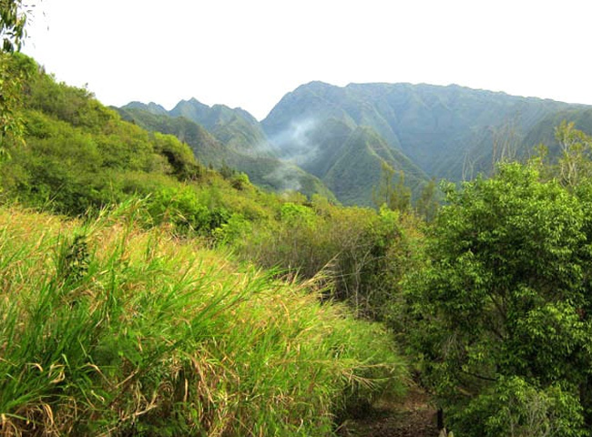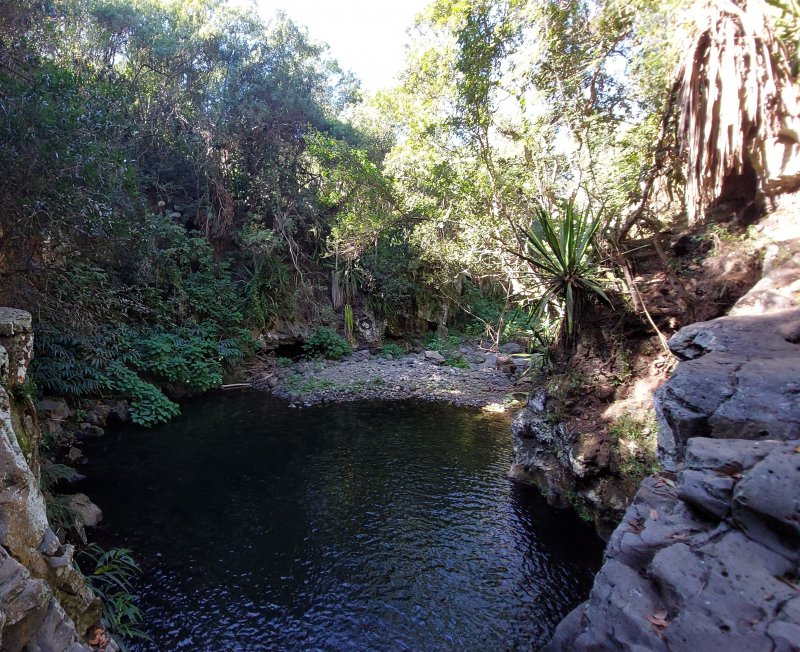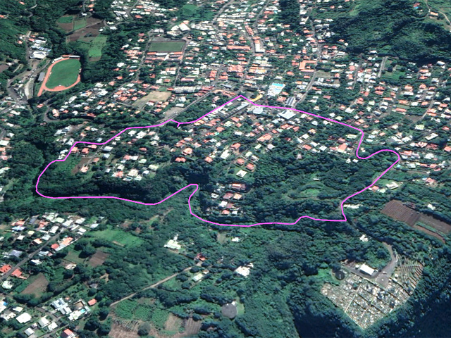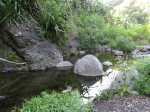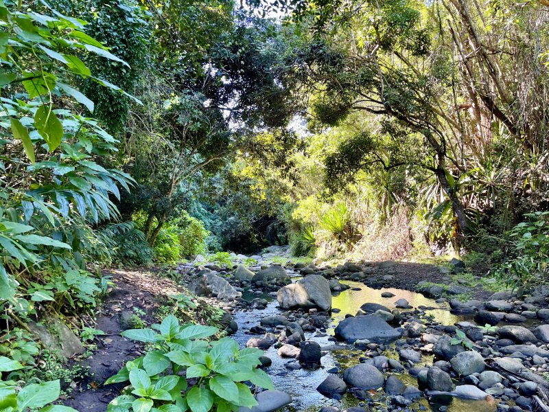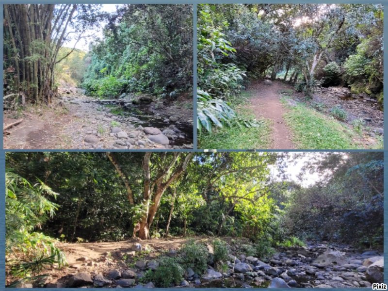 L'office du tourisme de l'Entre-Deux propose 5 circuits courts et faciles pour découvrir la ville et sa région proche. Pour les contrées plus lointaines, il existe les sentiers Bayonne, Jument, Zèbre, Chapelle, Le Doyen et bien d'autres car les pentes du Dimitile sont parcourues par des dizaines de kilomètres de sentiers, tous en très bon état et bien balisés (voir pour cela la carte de la région Sud qui propose une quinzaine de circuits). La courte sortie du Bassin Sassa permet de progresser dans une ravine verdoyante presque au cœur de la ville de l'Entre-Deux. Le bassin, alimenté par une petite cascade (Photo 16), est modeste mais son cadre boisé le rend très agréable. On peut également partir depuis le cimetière du village et on commence alors la boucle par le bassin. Une partie de la boucle s'intègre dans le tour du village de l'Entre-Deux qui utilise justement les sentiers remis au goût du jour par la ville. Les traces de peinture blanche sont fréquentes et on chemine facilement sur le fond de galets, à peine humidifiés par le petit cours d'eau.